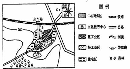 5、综合题 阅读某城市规划图,完成下列问题(12分)