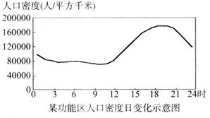 由图可知,该功能区人口流量大,且人口密度昼夜差别大,应为经济活动最繁忙的商业中心。