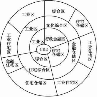 (1)图中CBD表示哪一种功能区,请说出其空间分布特点及主要职能。