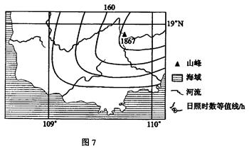 2、单选题 图7示意某地区1月份日照时数分布。日照时数等值线单位为小时,相邻等值线的差值为20小时。按图示方法在图中标注出另外三条日照时数等值线的数值,并说明理由。(10分)