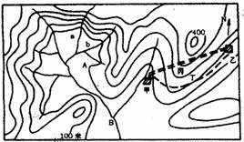 1、单选题 下图为某地区等高线地形图,公路沿河分布。据图回答1—3题。