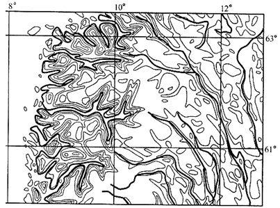 2.读图可知,在两条等温线之间,出现了两个闭合的等温线区域,其中甲地气温比正常气温低,在地形上应该是山地;乙地比正常气温高,在地形上应该是低地。