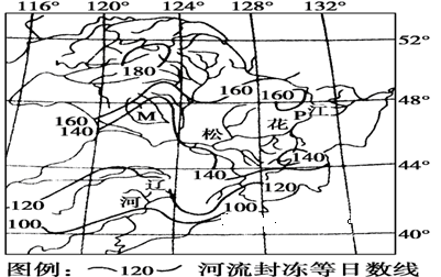 5、单选题 下图为“东北地区河流封冻等日数线分布图”,读图回答问题。