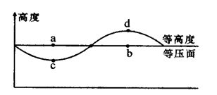 2、单选题 在图的等高面与等压面关系示意图中,a、b、c、d四个位置气压最高的是(?)