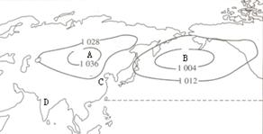 (2)受A气压中心的影响,图中C点盛行________风,D点盛行________风,我国的天气以________为主要特征。
