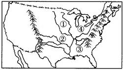 3、单选题 读美国部分山脉、水系图(数字代表河流),回答问题。