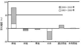 小题1:图示资料反映该地区的耕地面积大量增加而林地、草地、水体等面积不断减少,反映该河流流域过度开垦现象严重,而该地区位于我国西北地区,气候干旱,不合理的人类活动导致土地荒漠化严重。