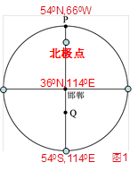 小题1:“图为以邯郸(36°N,114°E)为中心的半球示意图”依题可以各地地理坐标出如下图,图示地区夜半球点面积大,可见北极附近为极夜,说明太阳直射在南半球。Q所在经线为0:00,太阳直射点所在的经线为660W,为西半球,南极昆仑站可能是极昼。1140E地方时为0:00,可画图得新旧天的划分如图2。