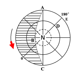 3、综合题 读图,图中阴影部分是夜间,ABC是晨昏线,按要求完成(9分)