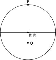 4、单选题 下图为以邯郸(36°N,114°E)为中心的半球示意图,Q点地处4°N,此刻夜半球与图示区域重叠达到最多。读图回答下列问题。?
