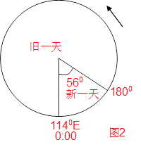 (2)此时太阳直射的地理位置是:? ? (经度)、 ? (纬度)