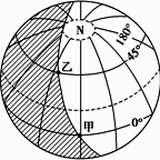 3、单选题 下图是全球某日某时刻的晨线(线上数据为经度)。据此回答1~2题。