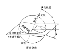 小题1:结合图示分析,黄赤交角为β,度数为23.5°;α为地轴与黄道面的夹角,为66.5°.回归线的度数与黄赤交角的度数相同。
