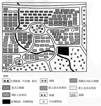 (2)C、D、E中属于低级住宅区的是________,其在城市中的一般分布规律是__________________________________________________。