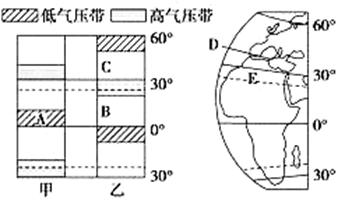 (4)乙(1分) 气压带、风带位置偏南(1分)