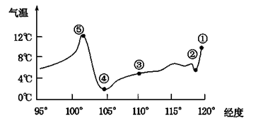 3、单选题 下图为我国沿26°N 1月平均气温曲线图。读图回答下题。