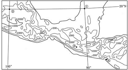 4、单选题 下图为世界某区域等高线分布图,读图回答下列小题。