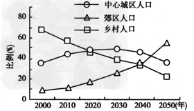 D.2050年中心城区人口数量与2000年相等