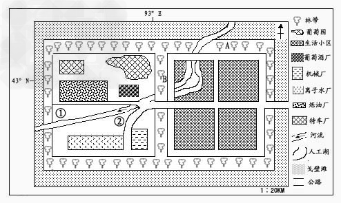 5、综合题 读下面西北某城镇规划图,回答下列问题。(8分)