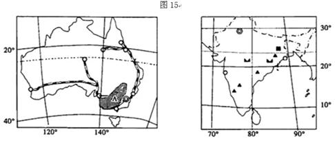 材料三:图15是澳大利亚(左图)和印度(右图)略图。
