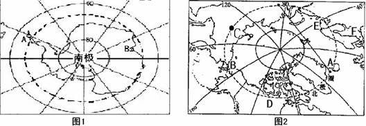 (1)在南极洲图上填出中国科考站:A??B?,没有极昼极夜的科学考察站是?(填字母)