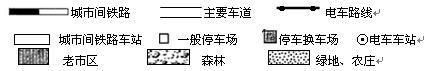 1、单选题 德国的弗赖堡市因推行先进的环保政策而著称,下图是弗赖堡市的中心商业区和老市区及其周边交通网。关于图中交通设施的叙述,不正确的是