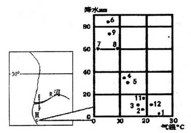 小题2:7月,在R河下游沿EF线作河流剖面图,与实际情况最接近的是
