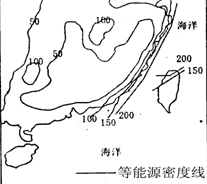 4、单选题 读我国东南沿海等能源密度线分布图,该类能源最有可能是