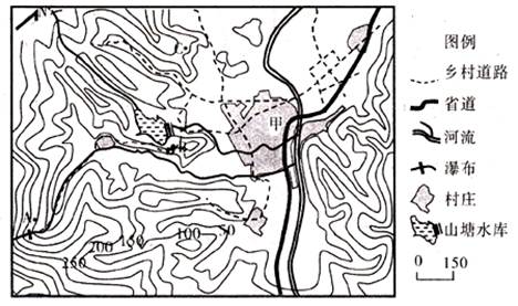 (2)甲村庄为图示区域内最大的村落,简析其形成的有利区位条件。(6分)