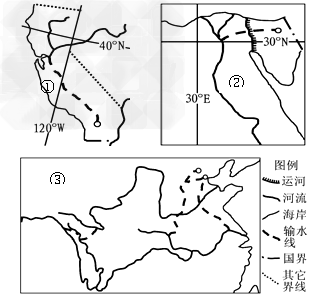 (1)①为__________国家的__________工程;②为__________ 国家的调水工程;③为__________国家的__________工程。上述工程主要是解决__________的问题。
