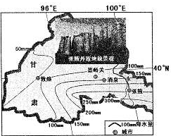 3、单选题 图为甘肃省西部年降水量分布图。图中景观图为张掖丹霞地貌景观,山体主要是红色砂砾岩。读图,回答下列各题。