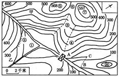 5、单选题 下图区域为我国南方某丘陵地区,图中两条小河的流量相当。读图文资料结合相关知识,回答下列问题。