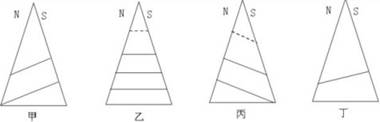 本题解析:考查山地垂直自然带谱。海拔相同的山,纬度越低,垂直带谱越多,乙垂直带谱最多,说明纬度最低,故选B。