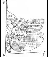 小题2:该山西坡自然带分布海拔高度高,西坡可能为迎风坡,该山脉应为南北走向山脉。所以本题选择B选项。