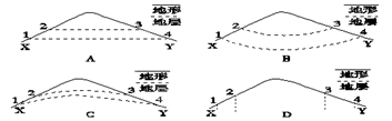 1、单选题  下图为某向斜山地形地质示意图。回答下列小题。