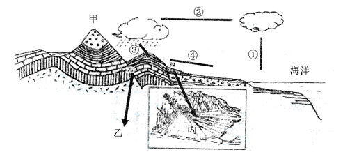 (4)形成丙处地貌的地质作用是?(选择填空)。