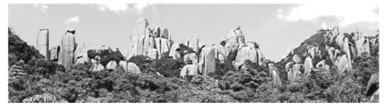 2、单选题  太姥山(最高峰海拔917米)位于福建省东北部,岩石为花岗岩,经长期地质作用形成各种形态的石景360多个。下图为太姥山花岗岩峰丛地貌景观图,读图完成下列问题。