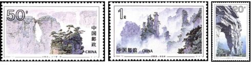 3、单选题 位于湖南省西部的武陵源景区岩峰高耸、绿树翠满,有天下第一奇山之美誉。读“武陵源风光邮票图”回答下列各题。