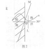 5、单选题  读图2,图中L表示洋流,M为晨昏线,a为最冷月等温线。完成4、5题。