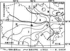 1、单选题  青藏高原四周多高山。青海省位于青藏高原东北部,平均海拔3 500米以上;柴达木盆地位于青海西北部。面积约占全省的三分之一。该图为青海省年降水量分布和年平均气温分区图。完成题目。