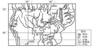 1.7月份,甲、乙两河下游2.次年1月,R地两片沼泽可能发生的变化及主要原因是