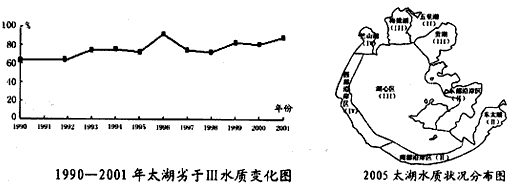 (1)从图中可以看出,1999—2001年太湖水质的变化趋势是 ,试分析产生这一现象的人为因素是: