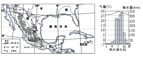 材料一:下图为墨西哥及周边区域示意图和阿尔普尔科气候资料图