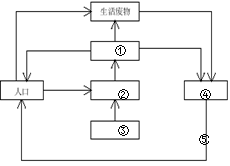 5、单选题 读“人口—资源—环境与经济过程”关系简图,回答: