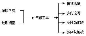4、单选题 读图,我国某区域自然环境各要素之间联系图,完成问题。