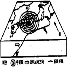 1.图中城市A位于震中的方向是2.若其他条件相同,以下各地烈度的关系是