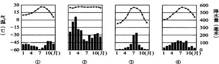 D.①温带海洋性气候②热带季风气候③温带季风气候④地中海气候