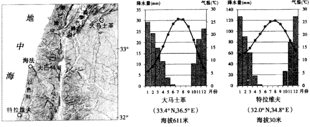 (1)依据资料,说出与特拉维夫相比大马士革的气候有何特点。(4分)