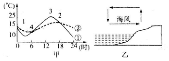 1.有关甲图描述正确的是2.由图甲推断,图乙中海风出现的时间约为3.产生甲、乙两图现象的原因是