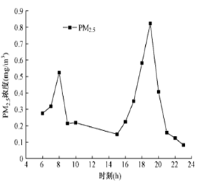 2、单选题 雾霾天气造成城市里大面积低能见度的情况。在早上或夜间相对湿度较大的时候形成的是雾,在白天气温上升、湿度下降的时候逐渐转化成霾。这种现象既有气象原因,也有污染排放原因。读某城市一天中PM2.5变化图,读下图,回答下列各题。